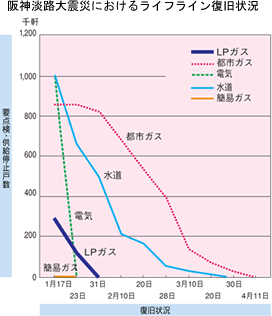 LPガスは、平成7年の阪神・淡路大震災や昨年の新潟県中越地震の際にも、供給の途絶は少なく、他のエネルギーに比べいち早く完全復旧を果たしています。またLPガスは、避難所への設置が素早くでき、煮炊きやお風呂・シャワーのほとんどの施設がLPガスで賄われました